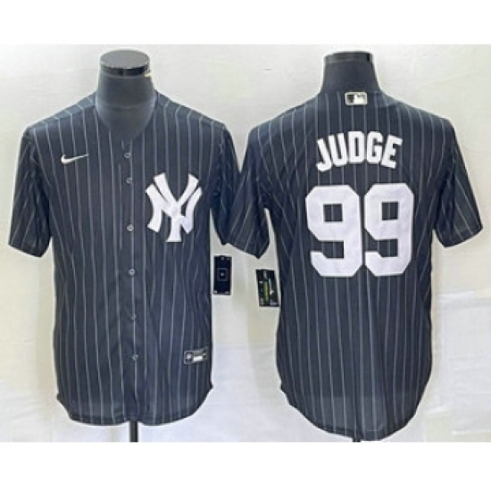 Men's New York Yankees #99 Aaron Judge Black Pinstripe Cool Base Stitched Baseball Jersey