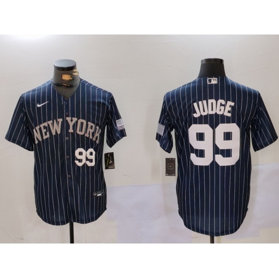 Men's New York Yankees #99 Aaron Judge Navy Pinstripe Fashion Cool Base Jerseys