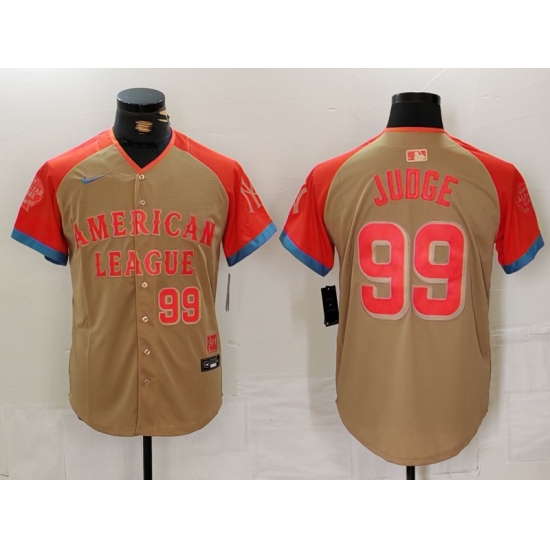 >Men's New York Yankees #99 Aaron Judge Number Cream 2024 All Star Limited Stitched Jersey