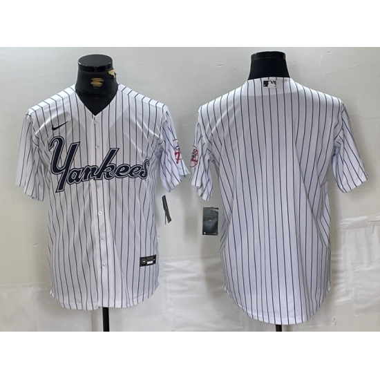 Men's New York Yankees Blank White Pinstripe Fashion Cool Base Jersey