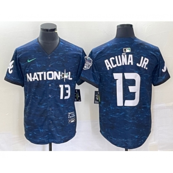 >Men's Nike Atlanta Braves #13 Ronald Acuna Jr Number Royal 2023 All Star Cool Base Stitched Baseball Jersey