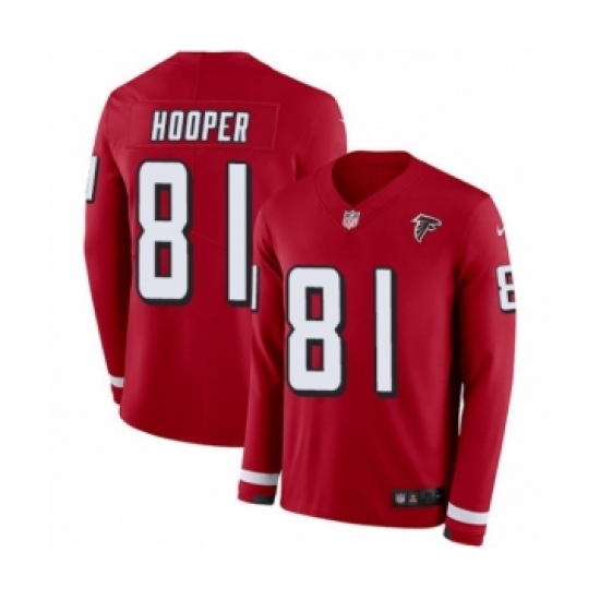 >Men's Nike Atlanta Falcons #81 Austin Hooper Limited Red Therma Long Sleeve NFL Jersey