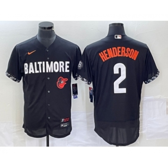 >Men's Nike Baltimore Orioles #2 Gunnar Henderson Black 2023 City Connect Flex Base Stitched Jersey 1