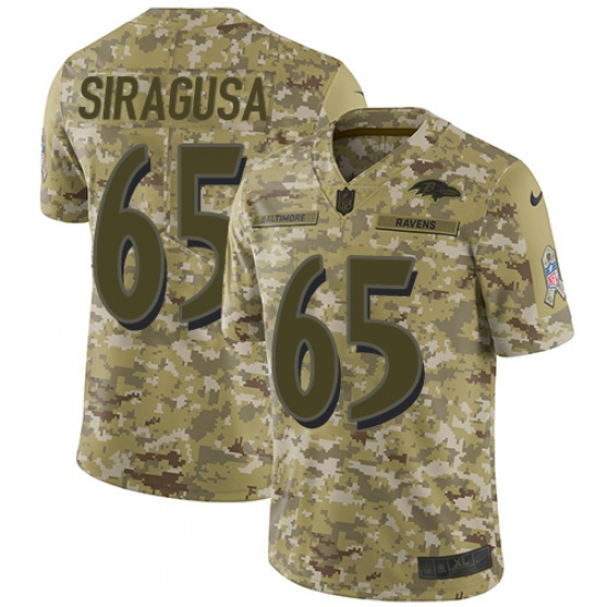 >Men's Nike Baltimore Ravens #65 Nico Siragusa Limited Camo 2018 Salute to Service NFL Jersey