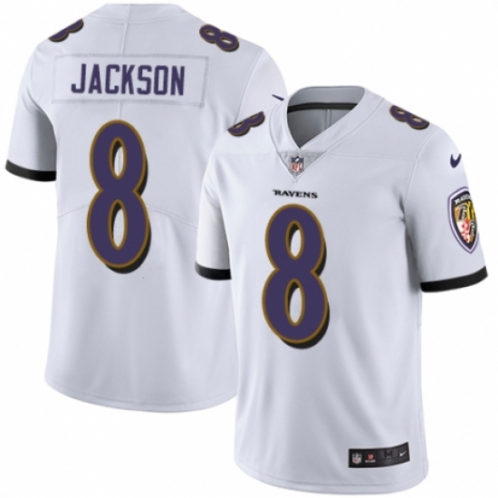 Men's Nike Baltimore Ravens #8 Lamar Jackson White Vapor Untouchable Limited Player NFL Jersey