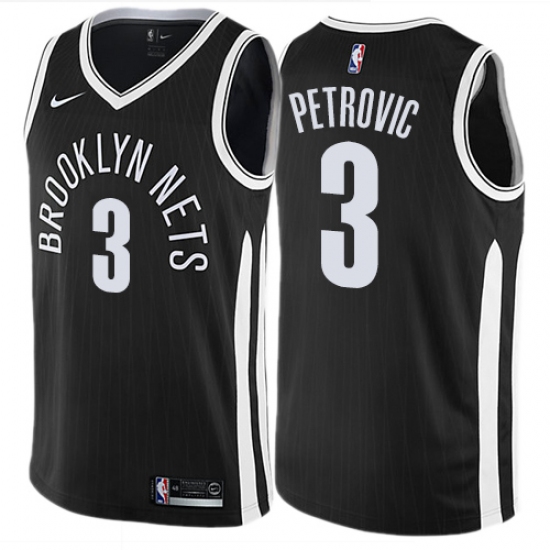 Men's Nike Brooklyn Nets #3 Drazen Petrovic Authentic Black NBA Jersey - City Edition