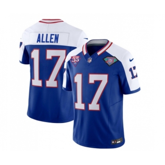 Men's Nike Buffalo Bills #17 Josh Allen Blue White 2023 F.U.S.E. 75th Anniversary Throwback Vapor Untouchable Limited Football Stitched Jersey