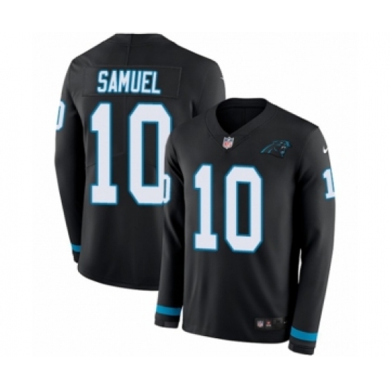 >Men's Nike Carolina Panthers #10 Curtis Samuel Limited Black Therma Long Sleeve NFL Jersey