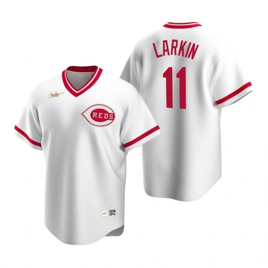 Men's Nike Cincinnati Reds #11 Barry Larkin White Cooperstown Collection Home Stitched Baseball Jersey