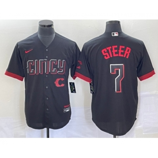 Men's Nike Cincinnati Reds #7 Spencer Steer Black 2023 City Connect Cool Base Stitched Baseball Jersey