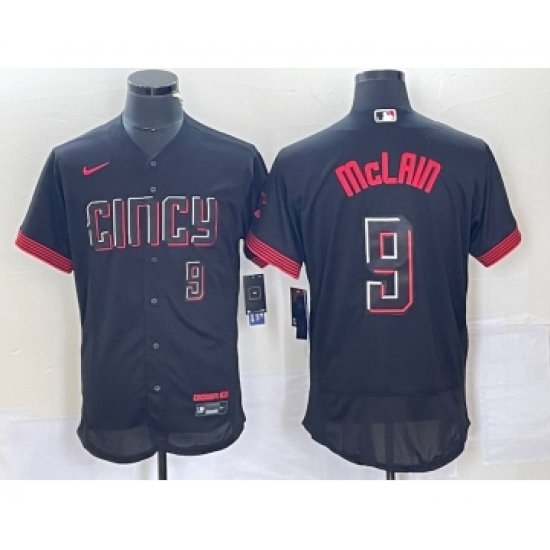 Men's Nike Cincinnati Reds #9 Matt McLain Number Black 2023 City Connect Flex Base Stitched Jersey2