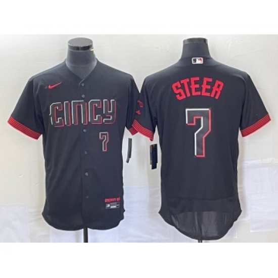 Men's Nike Cincinnati Reds #7 Spencer Steer Numer Black 2023 City Connect Cool Base Stitched Baseball Jersey 1