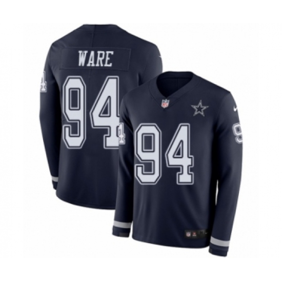 Men's Nike Dallas Cowboys #94 DeMarcus Ware Limited Navy Blue Therma Long Sleeve NFL Jersey