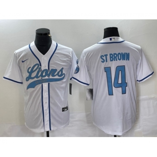 Men's Nike Detroit Lions #14 Amon Ra St Brown White Cool Base Stitched Baseball Jersey