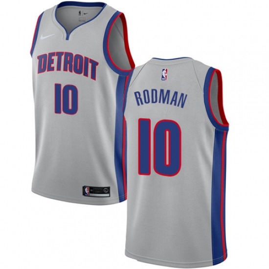 Men's Nike Detroit Pistons #10 Dennis Rodman Authentic Silver NBA Jersey Statement Edition