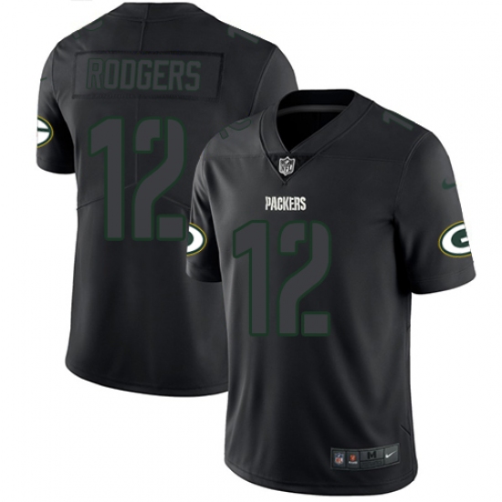 Men's Nike Green Bay Packers #12 Aaron Rodgers Limited Black Rush Impact NFL Jersey