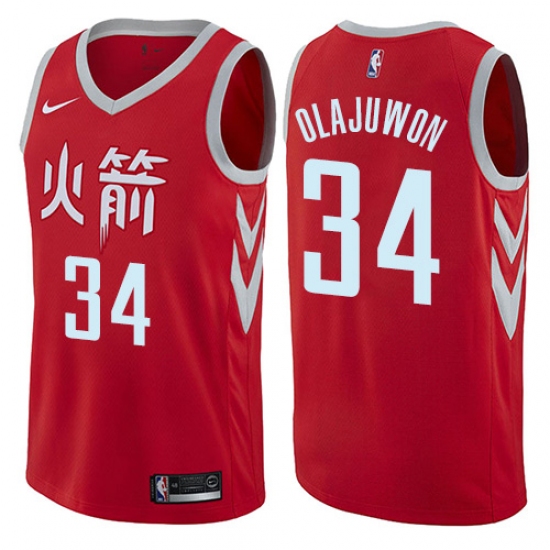 Men's Nike Houston Rockets #34 Hakeem Olajuwon Authentic Red NBA Jersey - City Edition