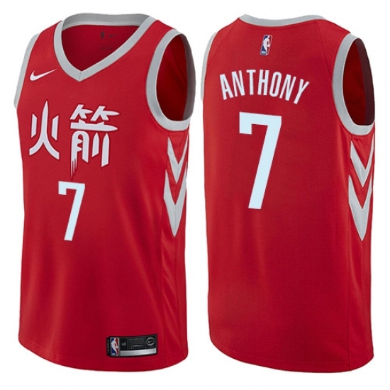 >Men's Nike Houston Rockets #7 Carmelo Anthony Swingman Red NBA Jersey - City Edition