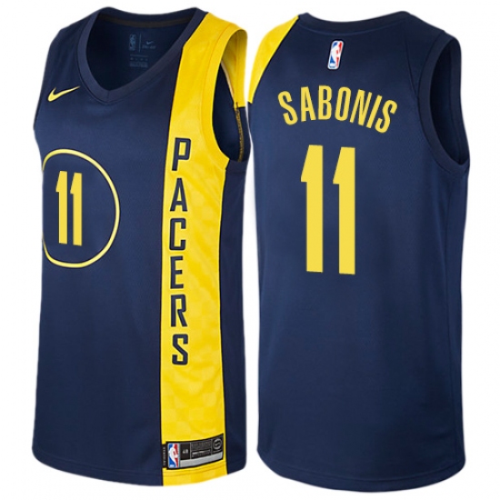 Home>NBA>Indiana Pacers>Domantas Sabonis>Men's Nike Indiana Pacers #11 Domantas Sabonis Swingman Navy Blue NBA Jersey - City Edition