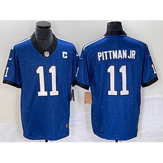 Men's Indianapolis Colts #11 Michael Pittman Jr. Blue 2025 F.U.S.E. Jim Irsay Vapor Limited Football Stitched Jersey