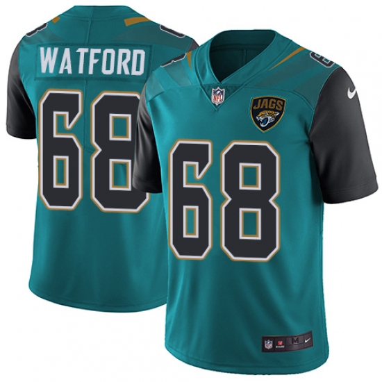 Home>NFL>Jacksonville Jaguars>Earl Watford>Men's Nike Jacksonville Jaguars #68 Earl Watford Teal Green Team Color Vapor Untouchable Limited Player NFL Jersey
