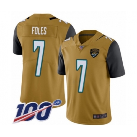 >Men's Nike Jacksonville Jaguars #7 Nick Foles Limited Gold Rush Vapor Untouchable 100th Season NFL Jersey