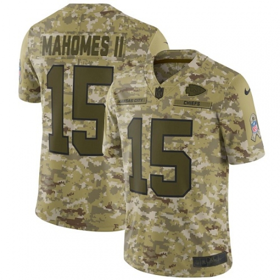 >Men's Nike Kansas City Chiefs #15 Patrick Mahomes II Limited Camo 2018 Salute to Service NFL Jersey