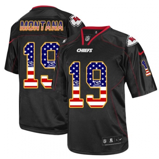 Home>NFL>Kansas City Chiefs>Joe Montana>Men's Nike Kansas City Chiefs #19 Joe Montana Elite Black USA Flag Fashion NFL Jersey