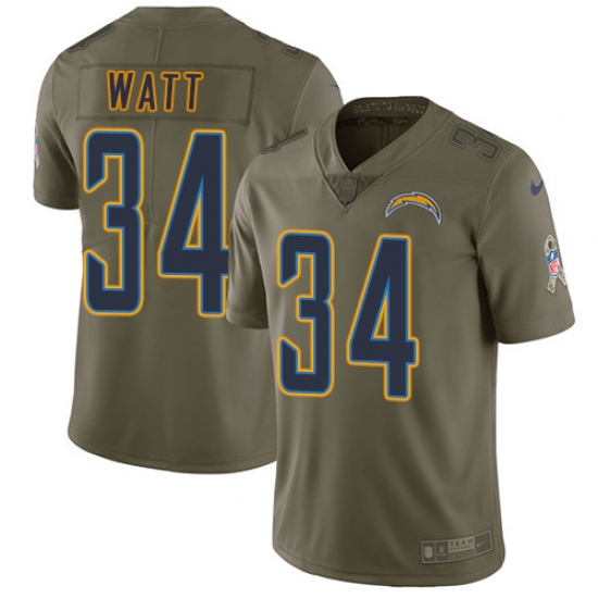 Home>NFL>Los Angeles Chargers>Derek Watt>Men's Nike Los Angeles Chargers #34 Derek Watt Limited Olive 2017 Salute to Service NFL Jersey