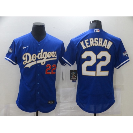 Men's Nike Los Angeles Dodgers #22 Clayton Kershaw Blue Elite Champions Authentic Jersey