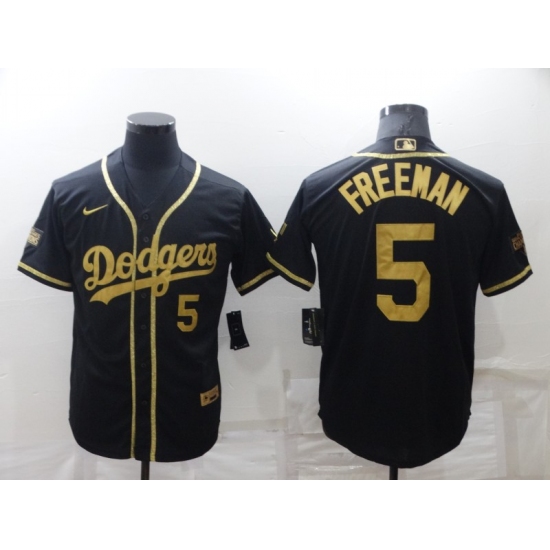 Men's Nike Los Angeles Dodgers #5 Freddie Freeman Black Gold Jersey