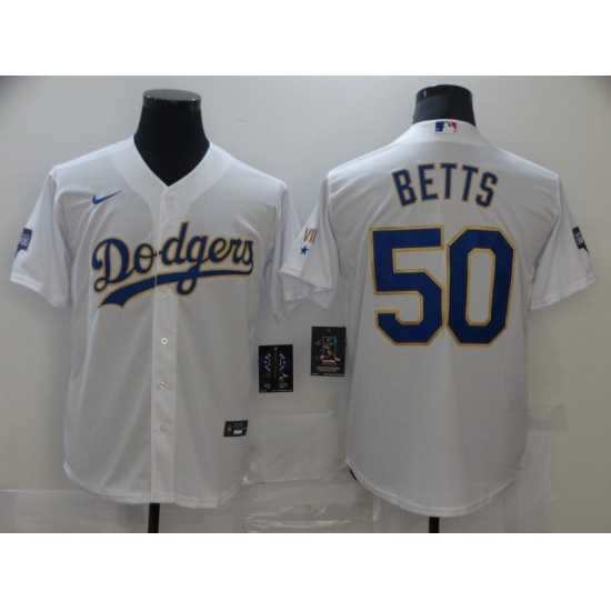 Men's Nike Los Angeles Dodgers #50 Mookie Betts White World Series Champions Jersey