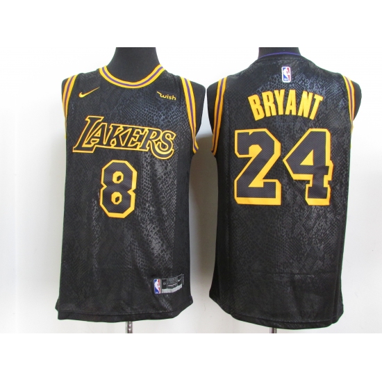 Men's Los Angeles Lakers #8 #24 Kobe Bryant Number Black With Cool Base Stitched Baseball Jersey