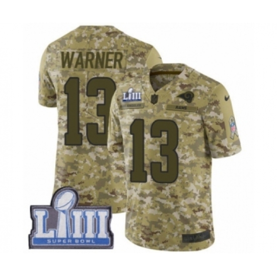 Men's Nike Los Angeles Rams #13 Kurt Warner Limited Camo 2018 Salute to Service Super Bowl LIII Bound NFL Jersey