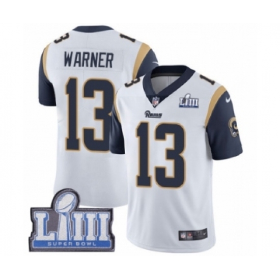 Men's Nike Los Angeles Rams #13 Kurt Warner White Vapor Untouchable Limited Player Super Bowl LIII Bound NFL Jersey