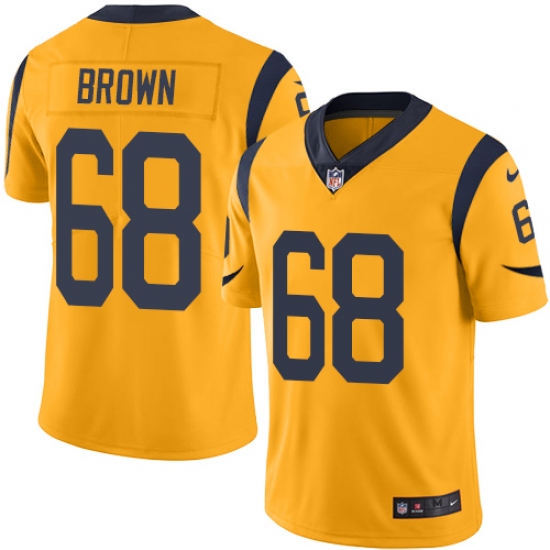 Home>NFL>Los Angeles Rams>Jamon Brown>Men's Nike Los Angeles Rams #68 Jamon Brown Limited Gold Rush Vapor Untouchable NFL Jersey