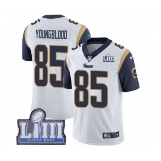 >Men's Nike Los Angeles Rams #85 Jack Youngblood White Vapor Untouchable Limited Player Super Bowl LIII Bound NFL Jersey
