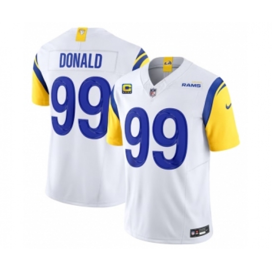 >Men's Nike Los Angeles Rams #99 Aaron Donald White 2023 F.U.S.E. 4-Star C Vapor Vapor Limited Football Stitched Jersey