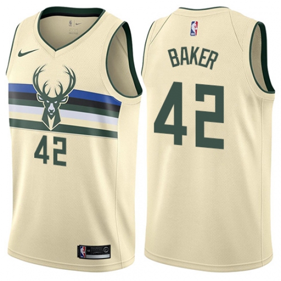 Men's Nike Milwaukee Bucks #42 Vin Baker Authentic Cream NBA Jersey - City Edition