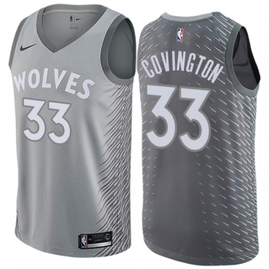 >Men's Nike Minnesota Timberwolves #33 Robert Covington Swingman Gray NBA Jersey - City Edition