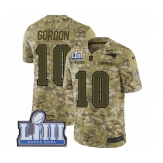 Men's Nike New England Patriots #10 Josh Gordon Limited Camo 2018 Salute to Service Super Bowl LIII Bound NFL Jersey