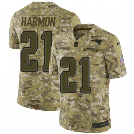 >Men's Nike New England Patriots #21 Duron Harmon Limited Camo 2018 Salute to Service NFL Jersey