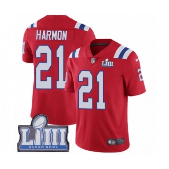 >Men's Nike New England Patriots #21 Duron Harmon Red Alternate Vapor Untouchable Limited Player Super Bowl LIII Bound NFL Jersey
