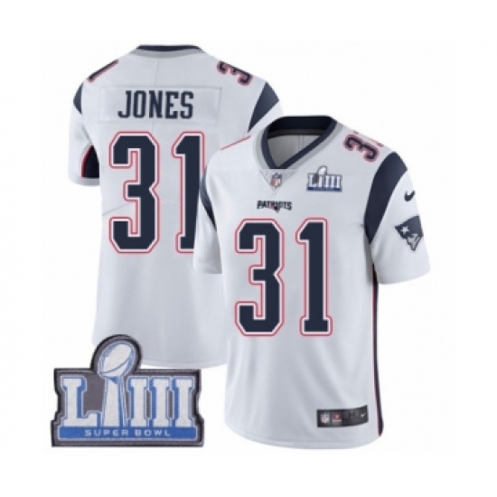 Men's Nike New England Patriots #31 Jonathan Jones White Vapor Untouchable Limited Player Super Bowl LIII Bound NFL Jersey