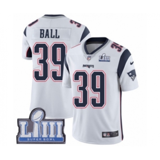 Men's Nike New England Patriots #39 Montee Ball White Vapor Untouchable Limited Player Super Bowl LIII Bound NFL Jersey