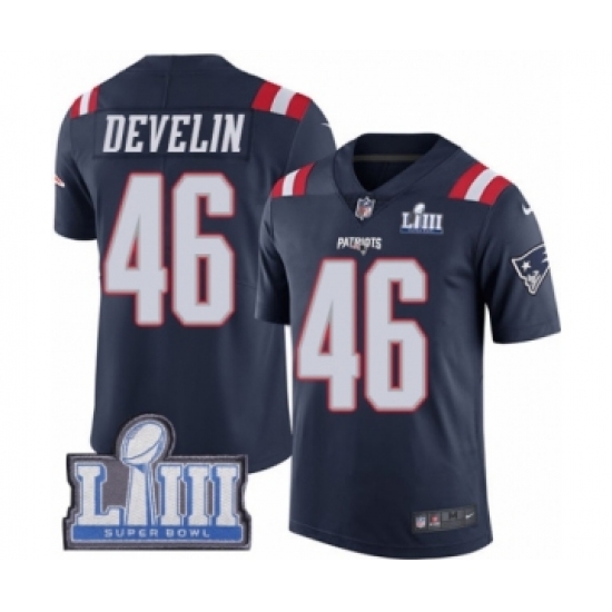 Men's Nike New England Patriots #46 James Develin Limited Navy Blue Rush Vapor Untouchable Super Bowl LIII Bound NFL Jersey