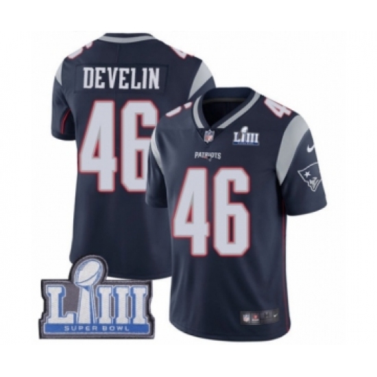 Men's Nike New England Patriots #46 James Develin Navy Blue Team Color Vapor Untouchable Limited Player Super Bowl LIII Bound NFL Jersey