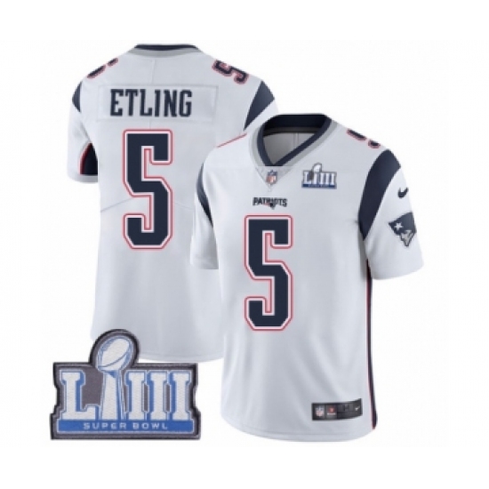 Men's Nike New England Patriots #5 Danny Etling White Vapor Untouchable Limited Player Super Bowl LIII Bound NFL Jersey