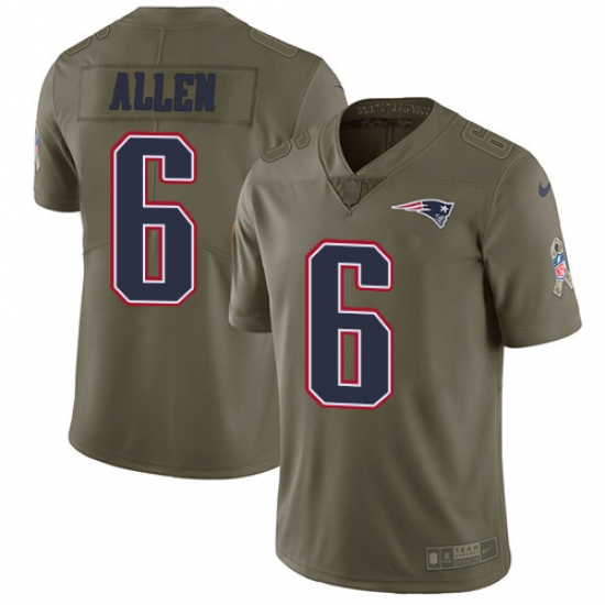 Home>NFL>New England Patriots>Ryan Allen>Men's Nike New England Patriots #6 Ryan Allen Limited Olive 2017 Salute to Service NFL Jersey