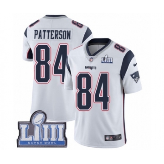 Men's Nike New England Patriots #84 Cordarrelle Patterson White Vapor Untouchable Limited Player Super Bowl LIII Bound NFL Jersey